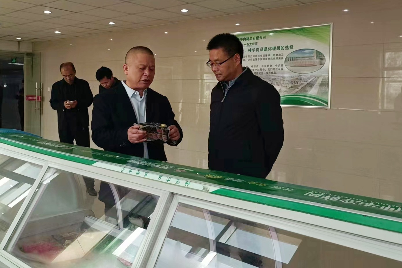 10月14日上午,淮北市副市長黃韡一行蒞臨安徽神華肉制品有限公司調研,市政府副秘書長李向陽等陪同調研。
